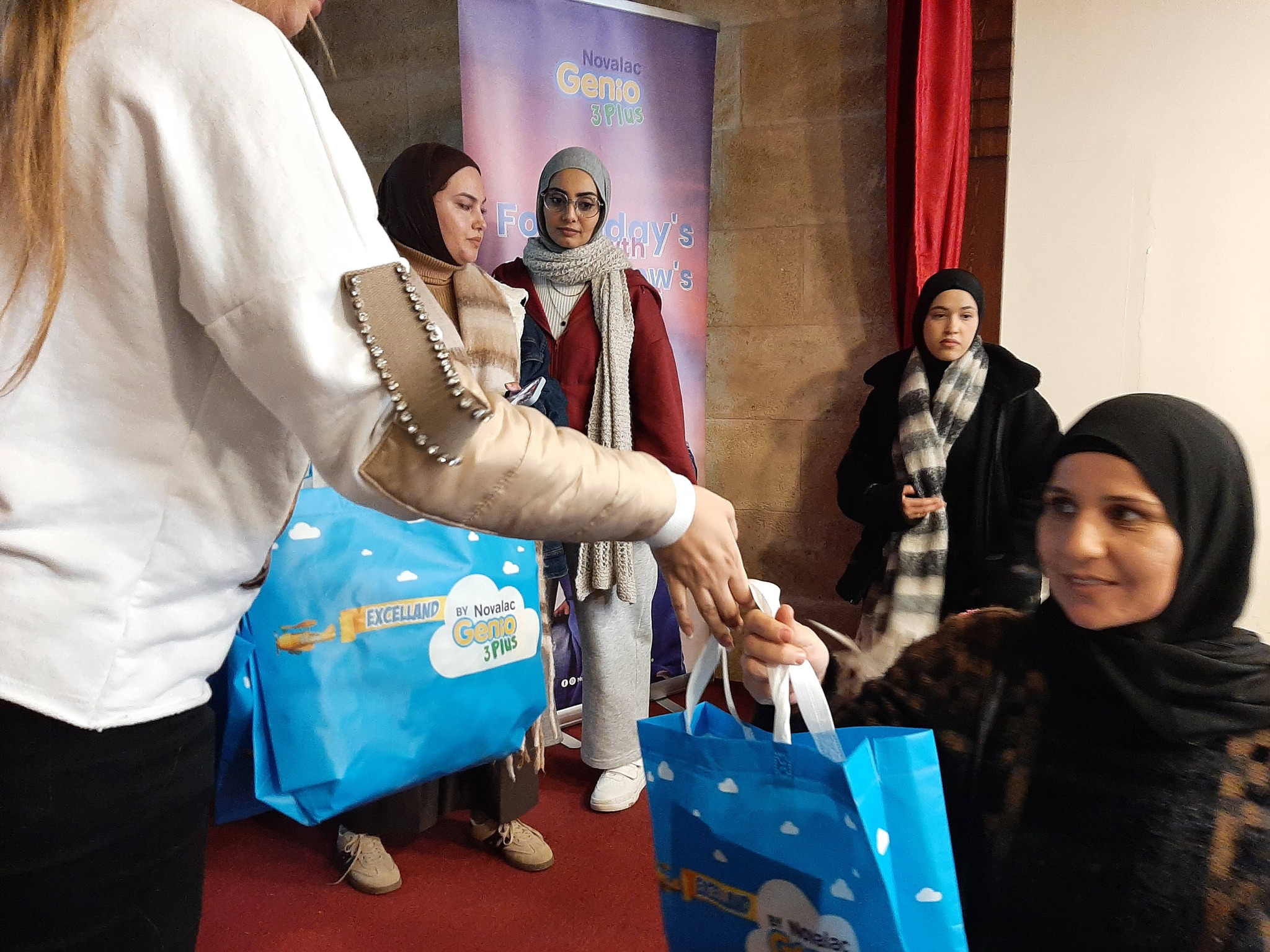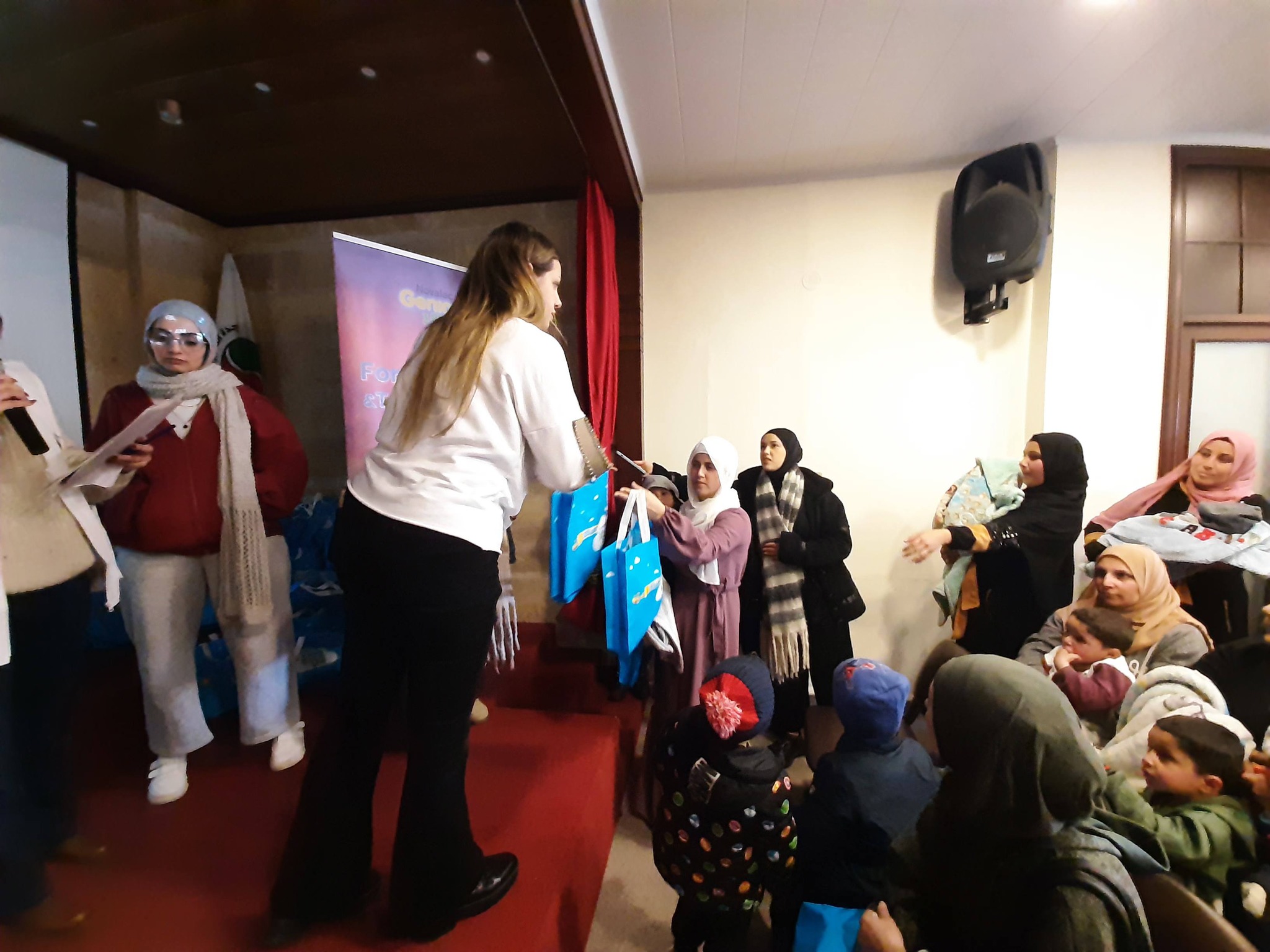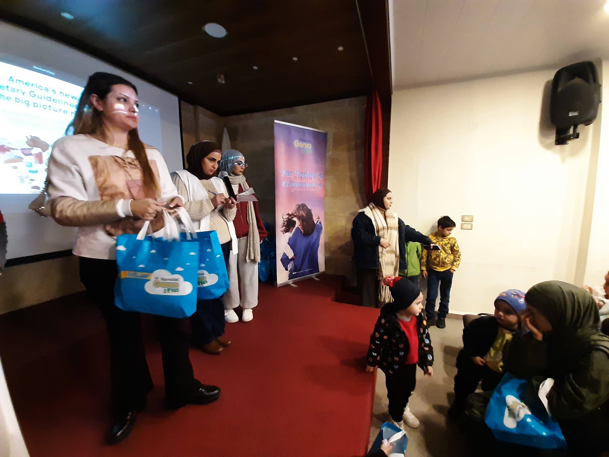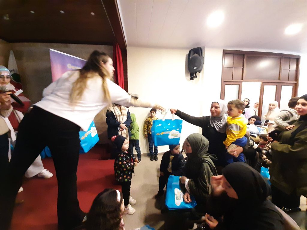 وقد حصلت الامهات على هدايا قيمة مؤلفة من بعض مستلزمات العناية بالاطفال كما تم توزيع علبة حليب للاطفال ما فوق السنة فقط .