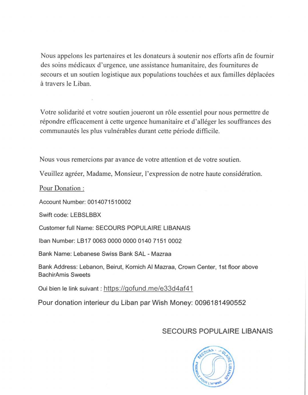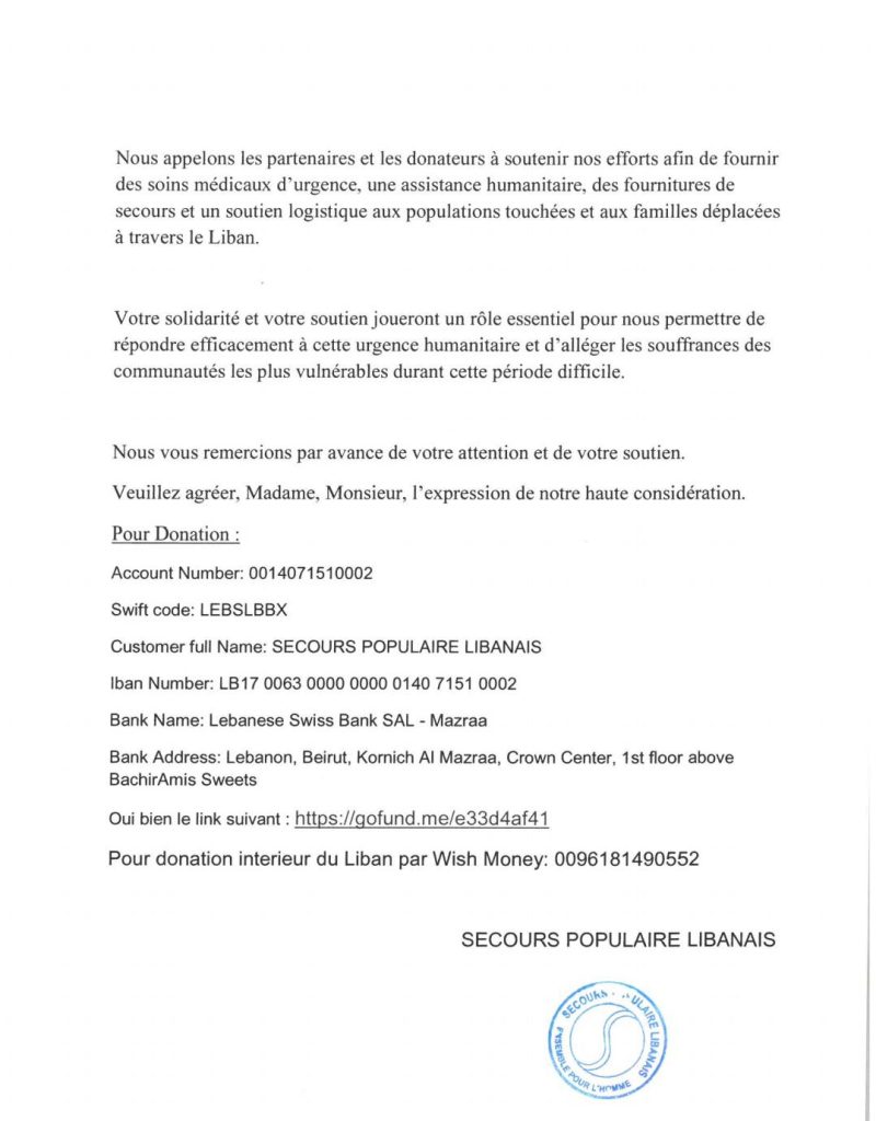 Warning: Undefined variable $ub in H:\root\home\rabih1974-001\www\SPLibanais\wp-content\plugins\advanced-page-visit-counter\public\class-advanced-page-visit-counter-public.php on line 160 نداء للتضامن صادر عن جمعية النجدة الشعبية اللبنانية ، باللغة الفرنسية - جمعية النجدة الشعبية اللبنانية S.P.Libanais